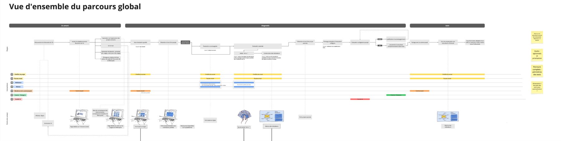 ERASME, le laboratoire d’innovation de la Métropole de Lyon, a souhaité expérimenter le prototype d’un outil de médiation permettant à des équipes projets de les aider à choisir ou non de lancer un projet d’expérimentation IA, selon une variété de critères, mais également de les orienter vers les ressources appropriées pour avancer dans leurs réflexions.