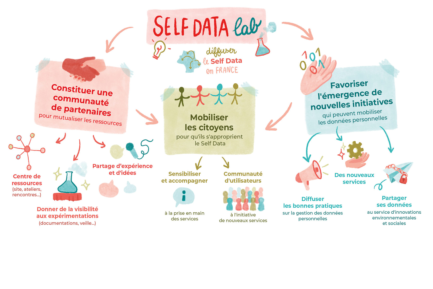 - Animer un écosystème Self Data en France : Mettre en réseau les acteurs du Self Data & Favoriser les échanges et retours d’expériences